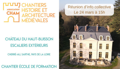 L’association CHAM organise une réunion d’information collective le 24 mars 2026 au château du Haut-Buisson, à Cherré-Au (Sarthe), pour présenter une formation longue au titre professionnel de Maçon du bâti ancien (niveau 3).