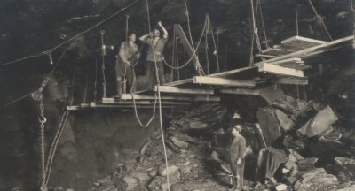 Crédit photo : Ardoisières de Misengrain à Noyant-la-Gravoyère, exploitation souterraine [1922]. ADML, 124 J 536 © Archives de Maine-et-Loire