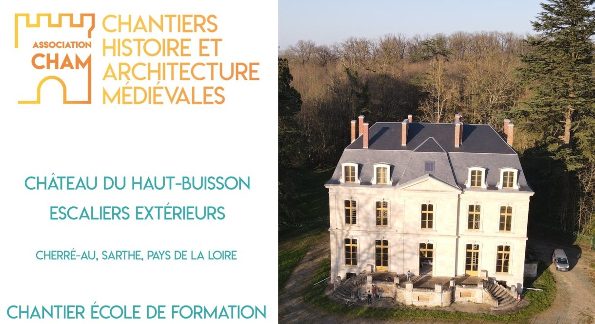 L’association CHAM organise en 2026 un chantier-école de formation au titre professionnel de Maçon du bâti ancien (niveau 3) au château du Haut-Buisson, à Cherré-Au (Sarthe). Ouverte à seulement 8 participant·e·s, cette formation de longue durée permettra de se former concrètement aux techniques de restauration du patrimoine bâti.